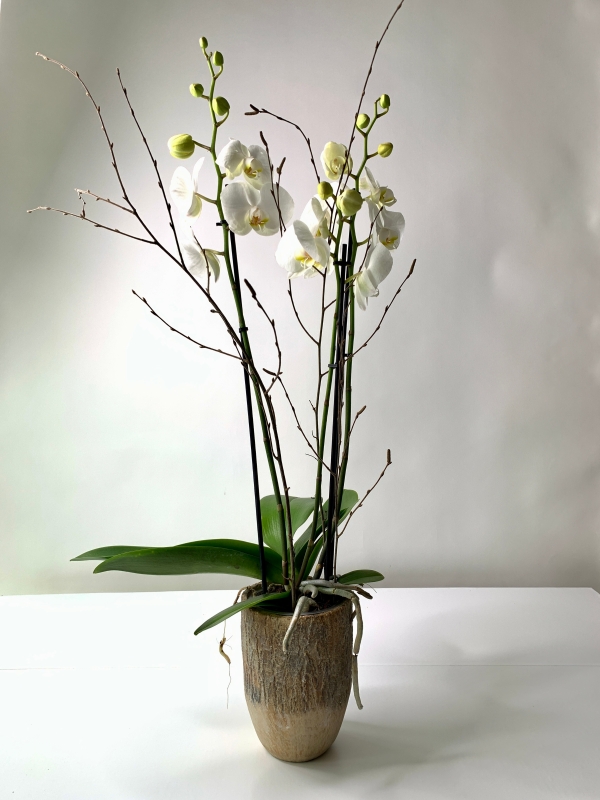 Double Stemmed Phalaenopsis Orchid Plant in Clay Pot